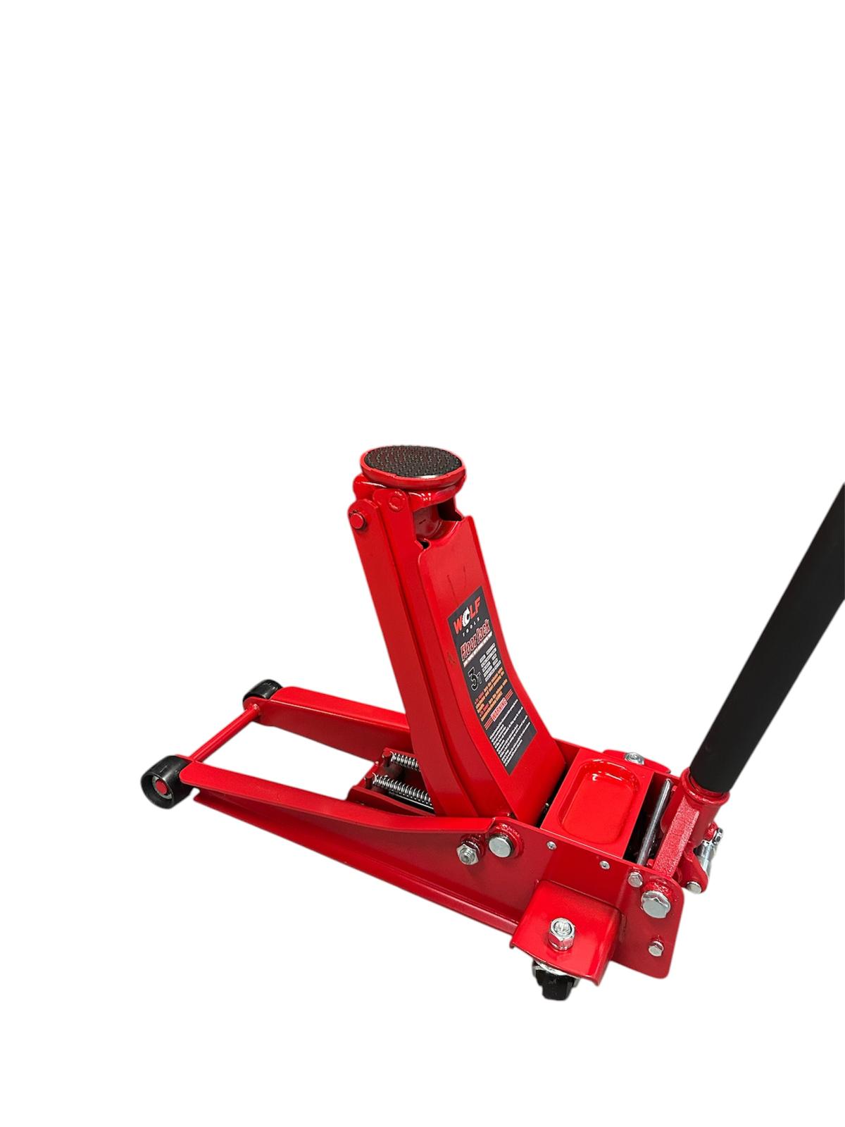 Door de lange pompstang is het een fluitje van een cent om de krik te bedienen.